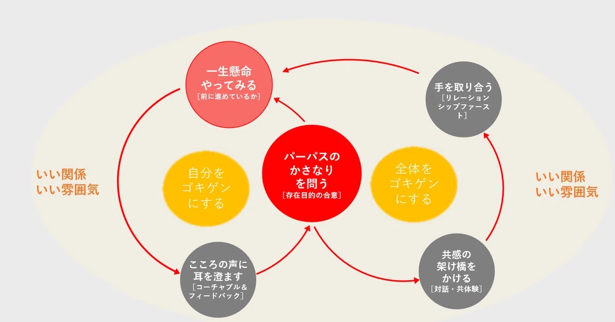 パーパスという文脈(コンテクスト)を軸に、一人ひとりが解釈を重ね行動に繋げていく。上司の指示ではなくパーパスをもとに自分自身に問うことで状況に応じた最適なアクションを取る。